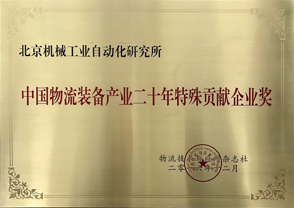 北京機械工業自動化研究所(以下簡稱“北自所”)在本次慶典中榮獲“中國物流裝備產業二十年特殊貢獻企業獎”。