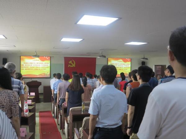 大會在莊嚴的國歌聲中拉開序幕,6名新黨員在黨群部部長王輝同志的帶領下面對黨旗莊嚴宣誓,與會人員全體起立,重溫了入黨誓詞。
