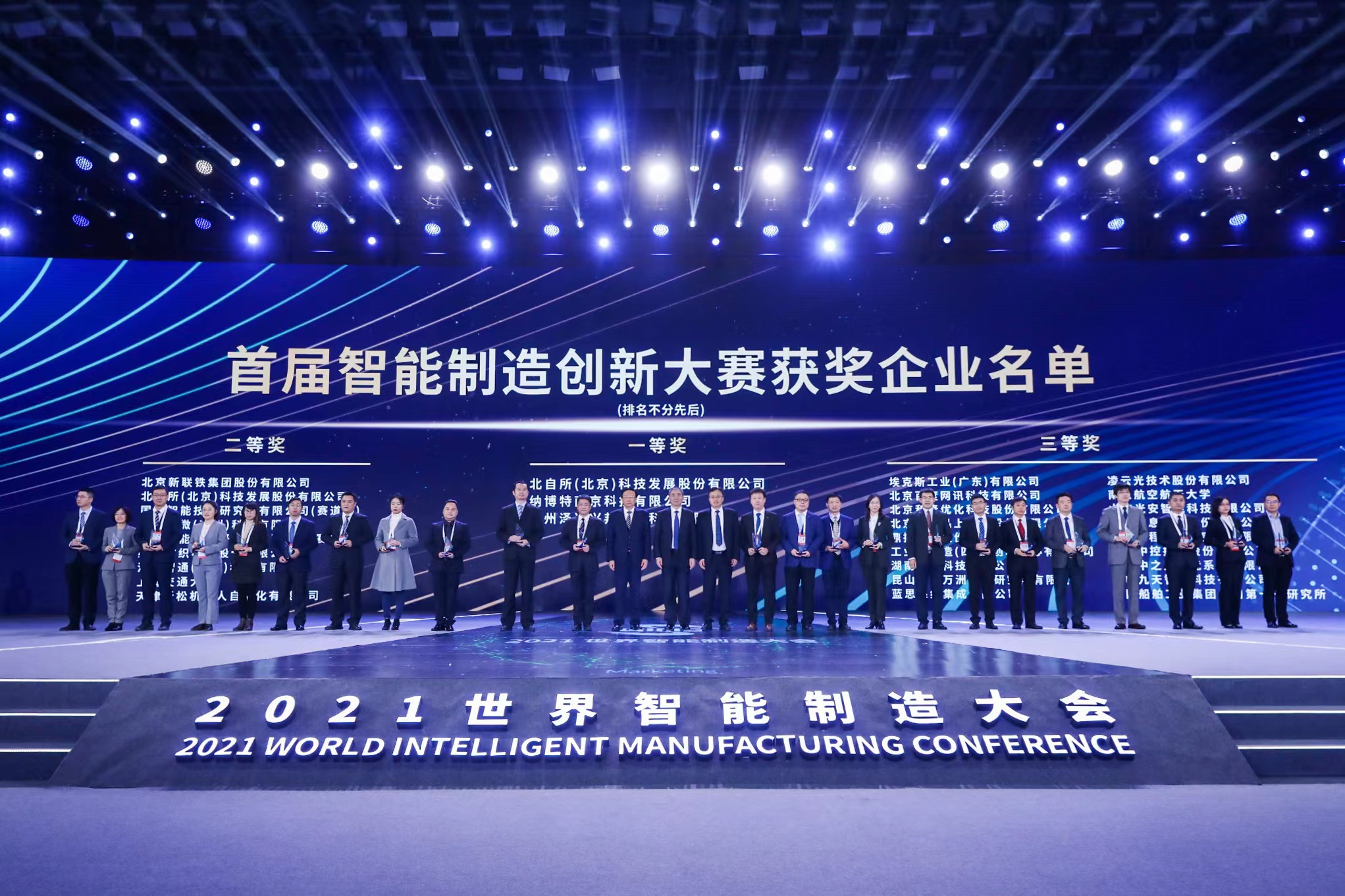 12月8日,2021年世界智能制造大會于南京盛大開幕,并對全國首屆智能制造創新大賽獲獎項目進行重磅發布。北自所(北京)科技發展股份有限公司(以下簡稱“北自科技”)攜兩支創新團隊參加了兩個賽道的角逐,憑借突出的創新成果和推廣應用,從全國近1000支隊伍中脫穎而出,以北部賽區兩個賽道第一名的成績進入全國總決賽。最終,北自科技“物流數字孿生裝備”項目榮獲“智能制造裝備”賽道一等獎,“化纖長絲絲餅作業全流程智能化解決方案“項目榮獲”系統集成解決方案“賽道二等獎。工業和信息化部黨組成員、副部長辛國斌為北自科技獲獎成果頒發了榮譽獎杯。