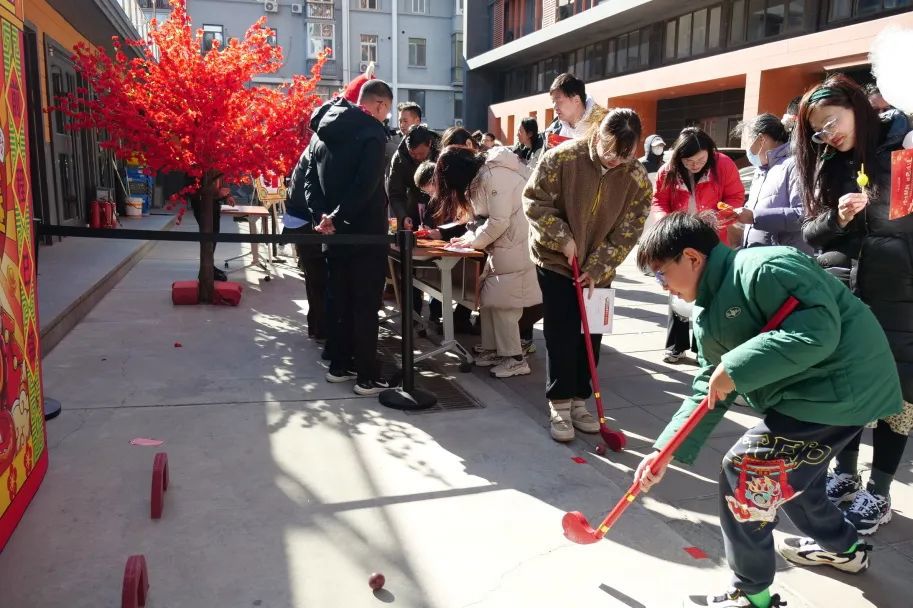 此次主題活動以沉浸式體驗傳遞傳統文化魅力,寫福字、剪窗花積攢“好福氣”,投壺、捶丸體驗非遺項目“好雅氣”,歡樂投籃、鐵環挑戰贏來“好運氣”,開心保齡球、騎行發電棉花糖為“好身體”補充能量,詩詞接龍、愿望樹下展示“好才氣”,歡歡喜喜猜燈謎迎來新年“好景氣”。每一個環節都讓人流連忘返,一張張笑臉寫滿喜悅。豐富多彩的傳統文化活動將歡樂熱鬧的氛圍點燃,營造了喜慶祥和的節日氣氛,展示出幸福美好生活的氣象,也奏響了新春奮發向上的序曲。